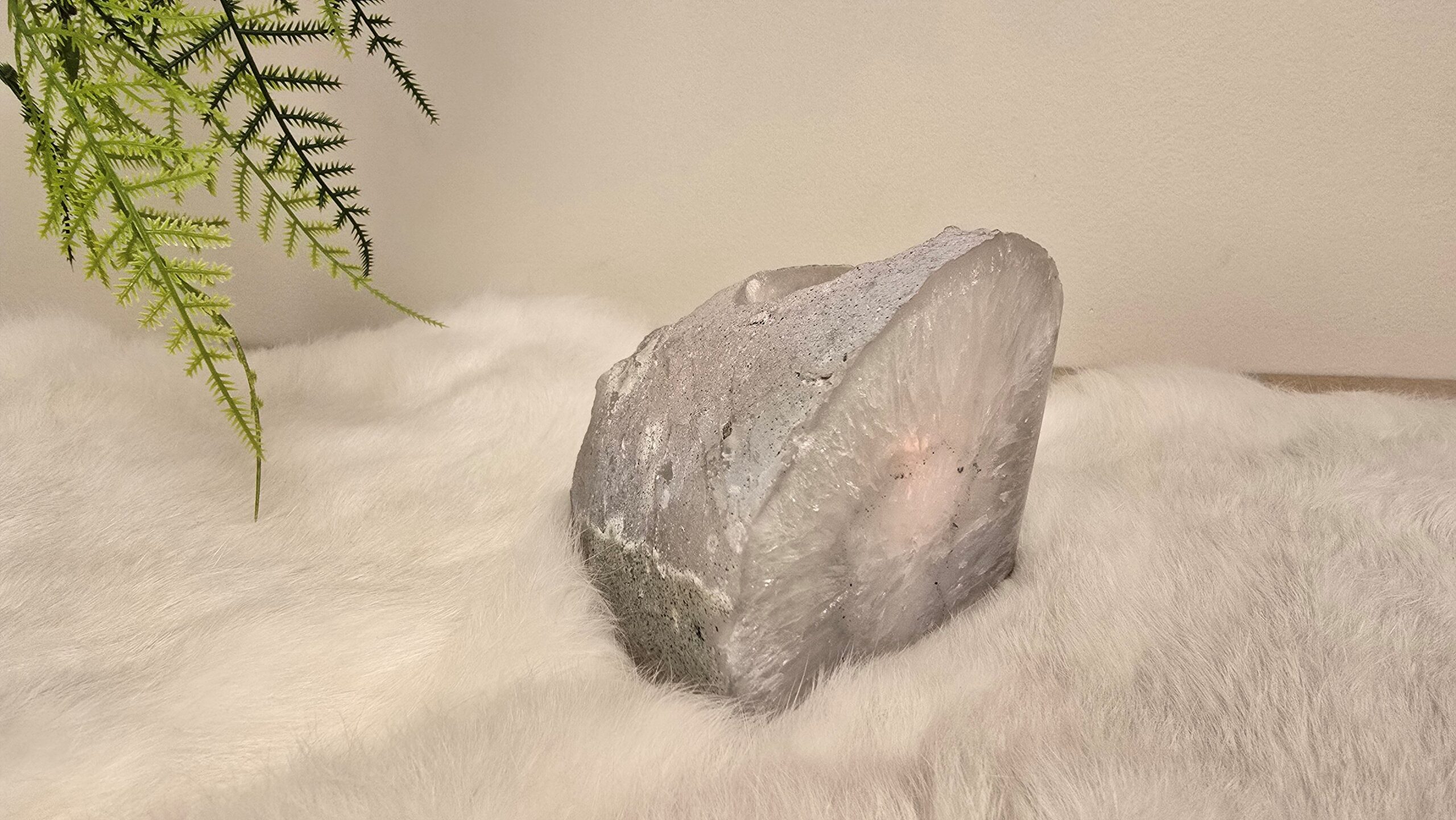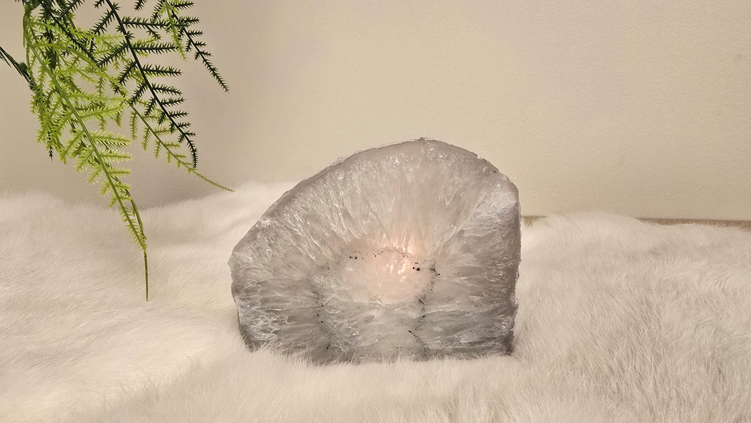 Agaat waxinelicht met voorzijde gepolijst en rondom ruw