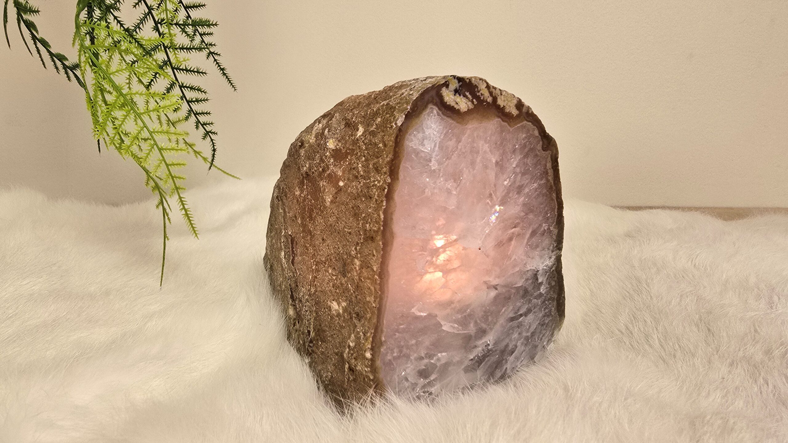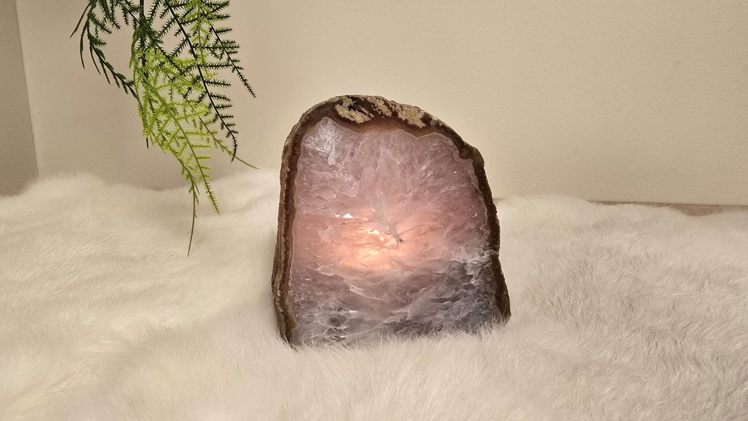 Agaat waxinelicht met voorzijde gepolijst en rondom ruw