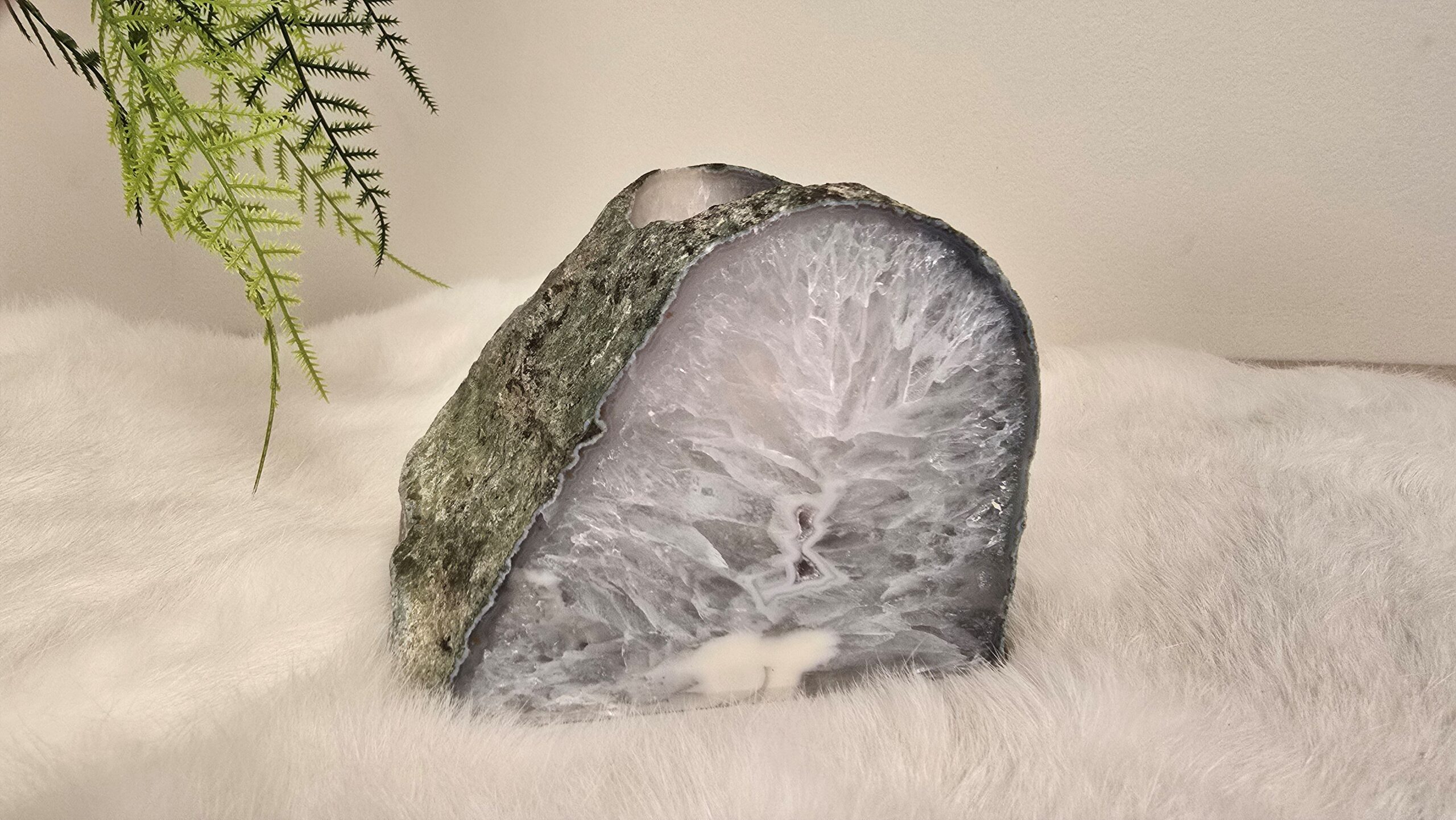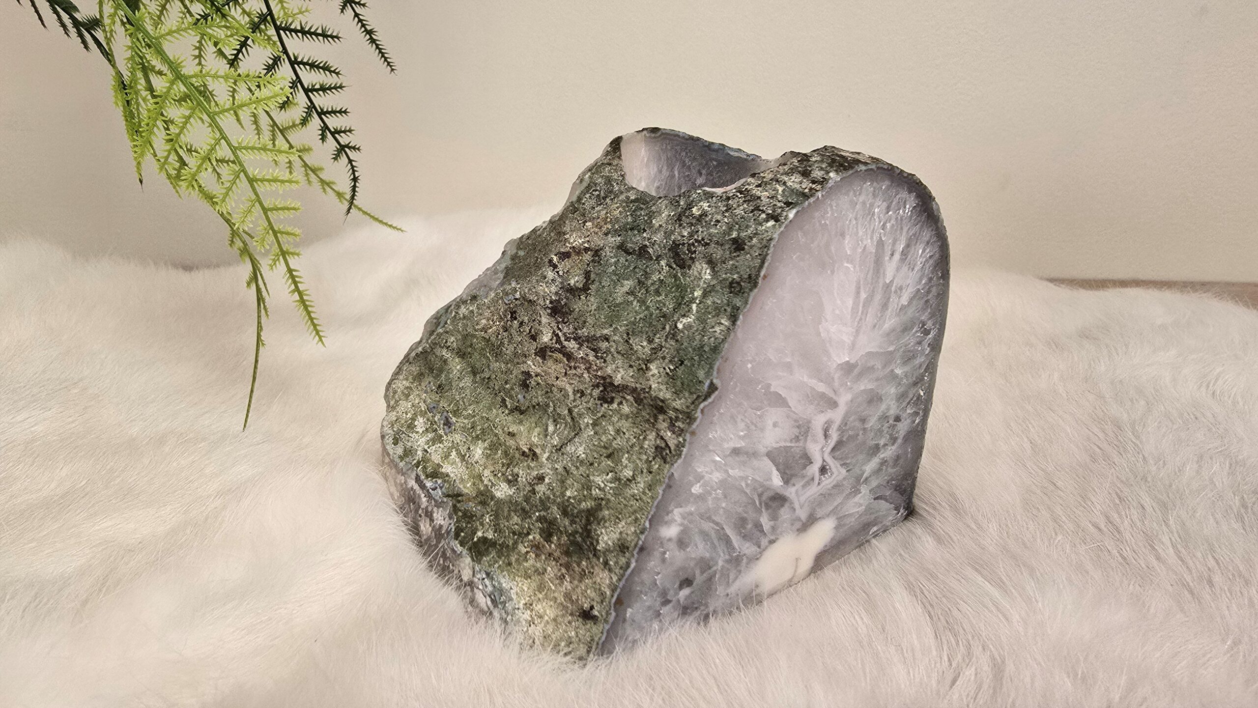 Agaat waxinelicht met voorzijde gepolijst en rondom ruw