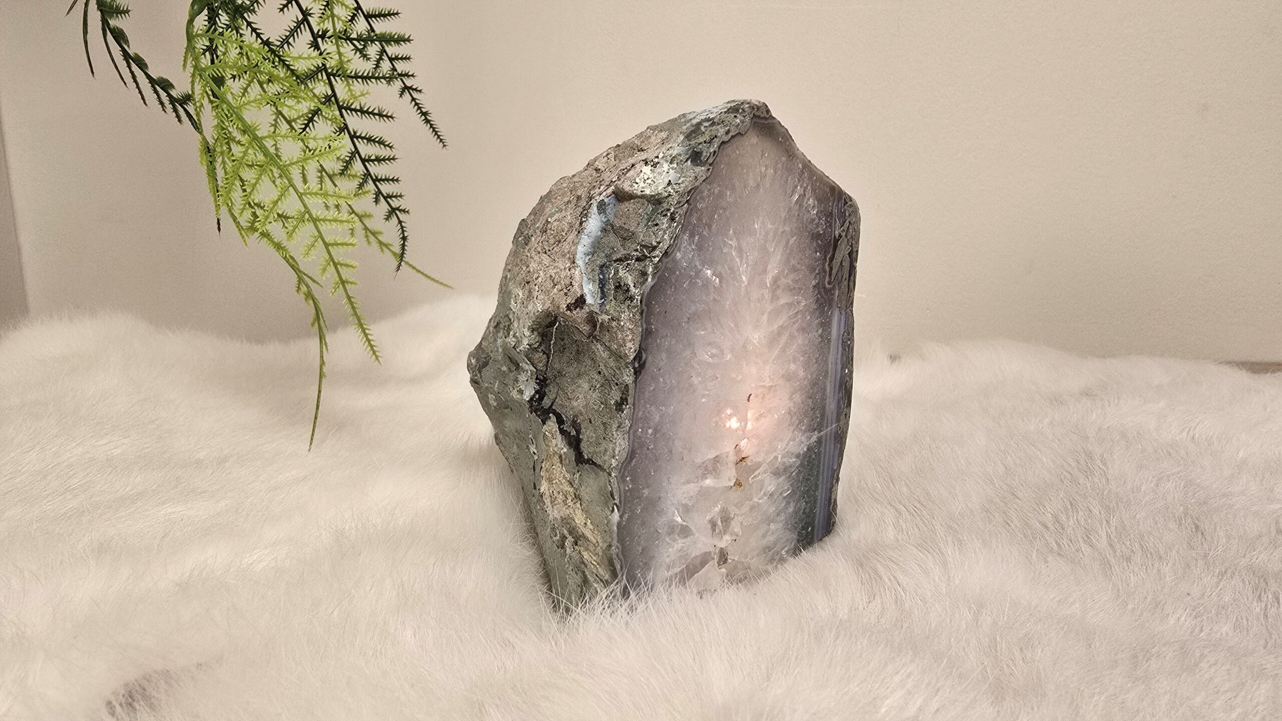 Agaat waxinelicht met voorzijde gepolijst en rondom ruw