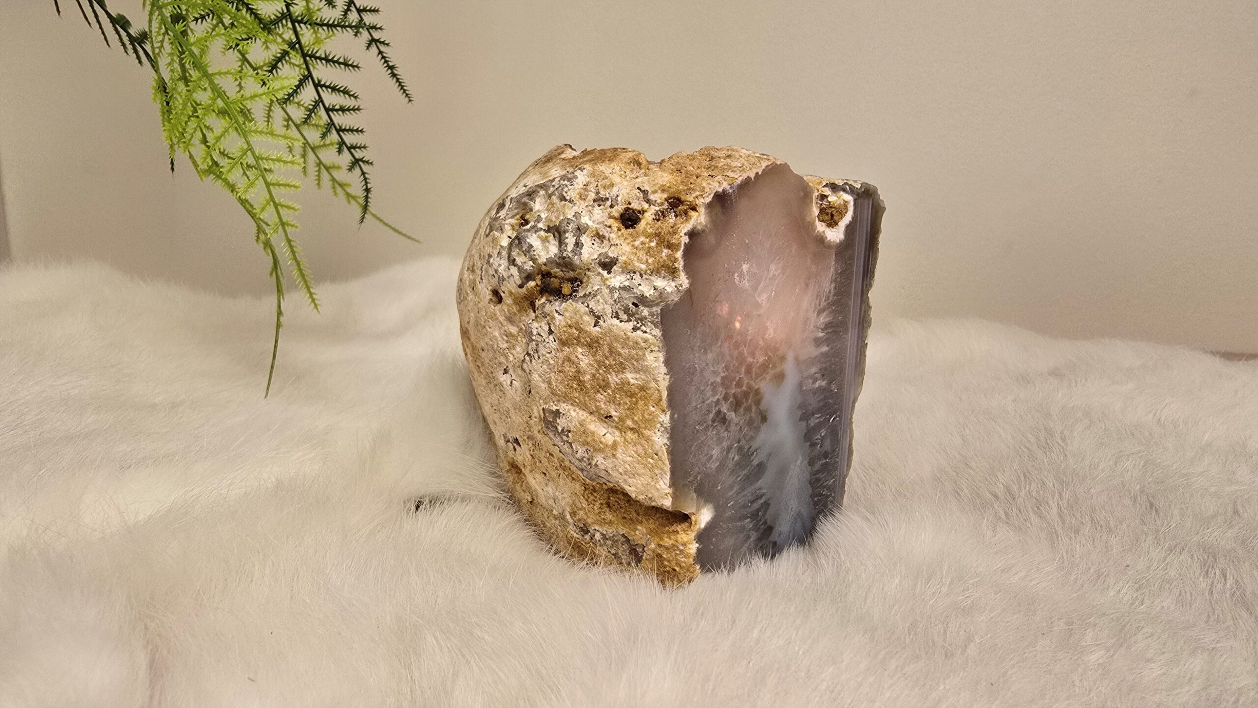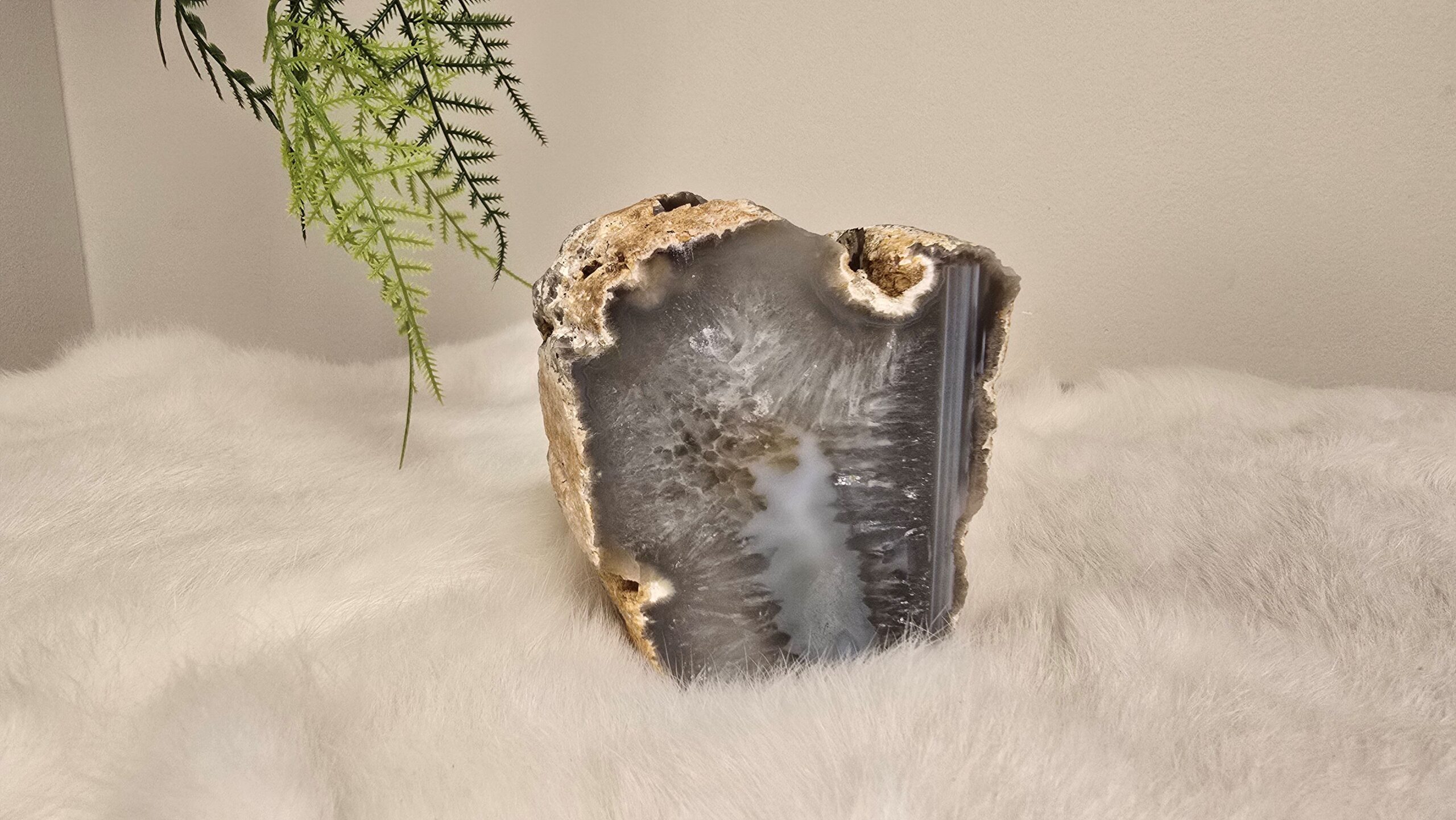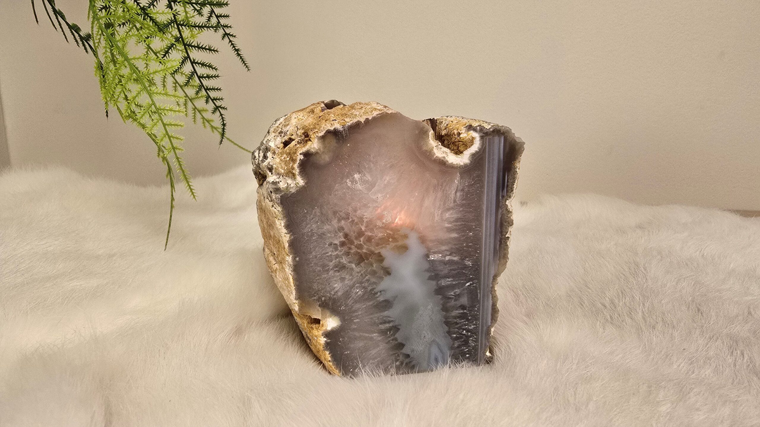 Agaat waxinelicht met voorzijde gepolijst en rondom ruw