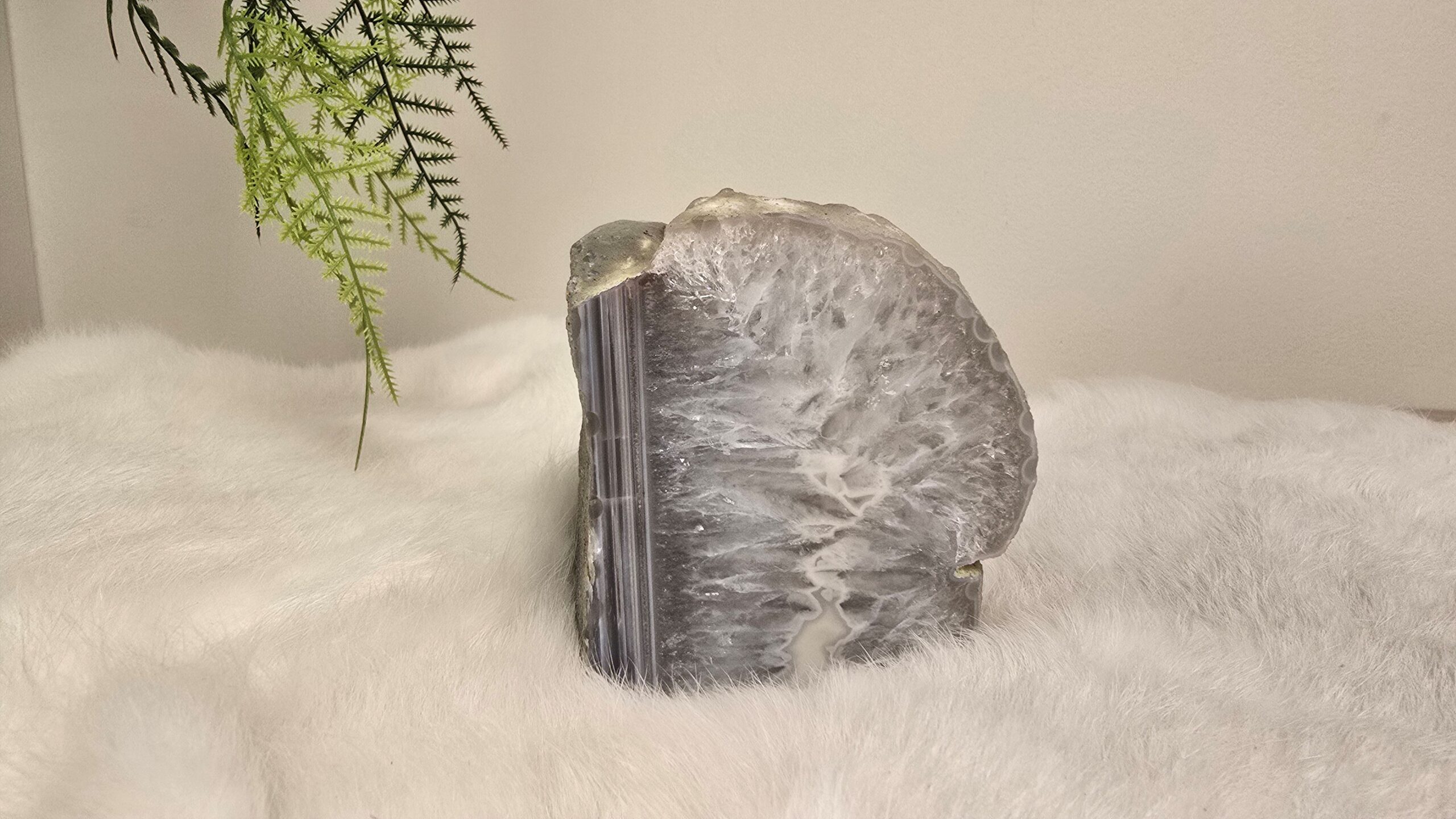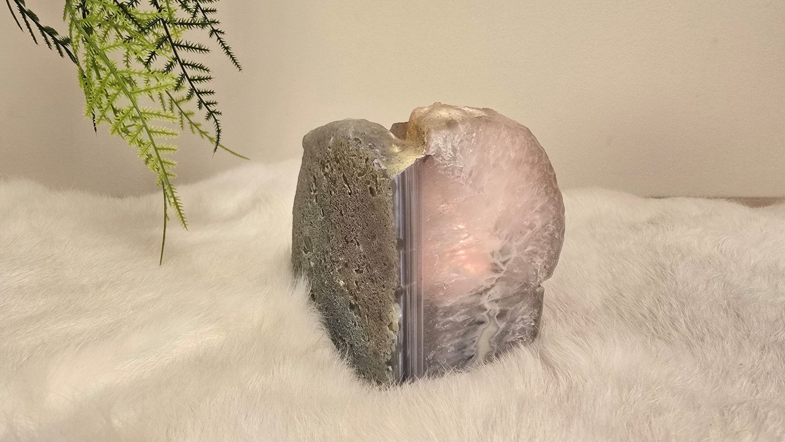 Agaat waxinelicht met voorzijde gepolijst en rondom ruw