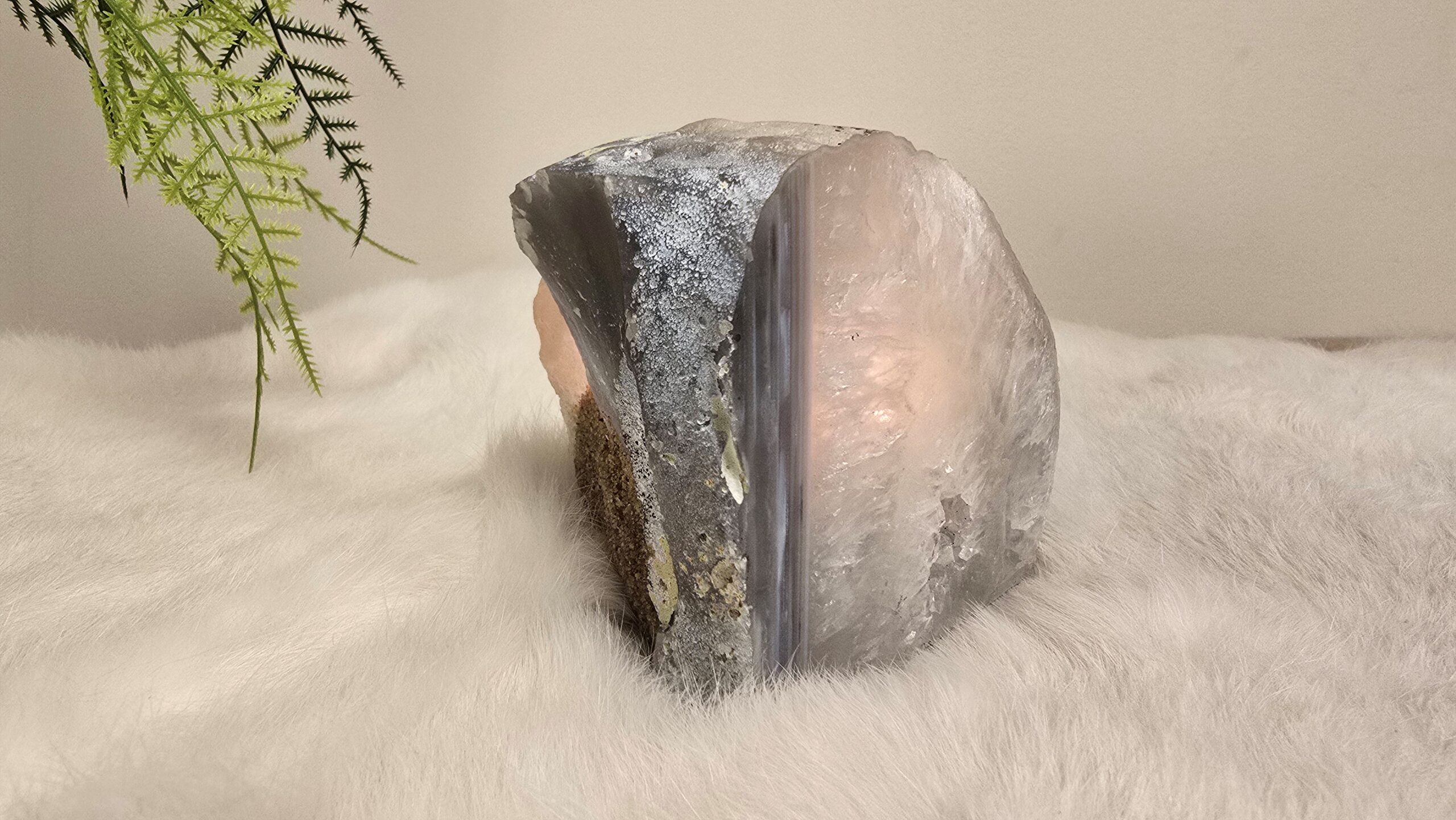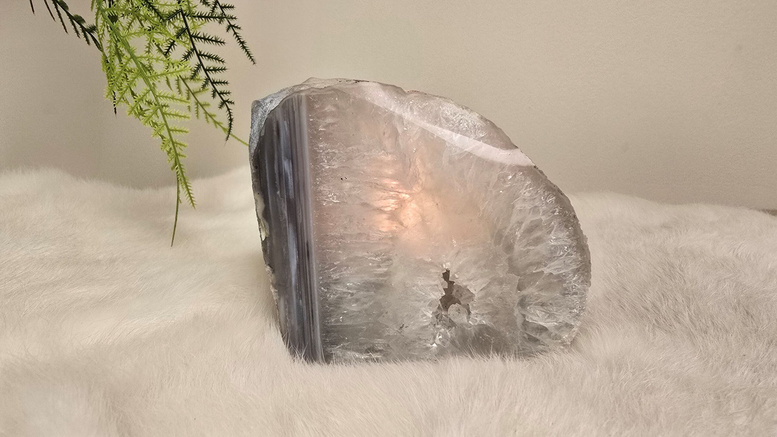 Agaat waxinelicht met voorzijde gepolijst en rondom ruw