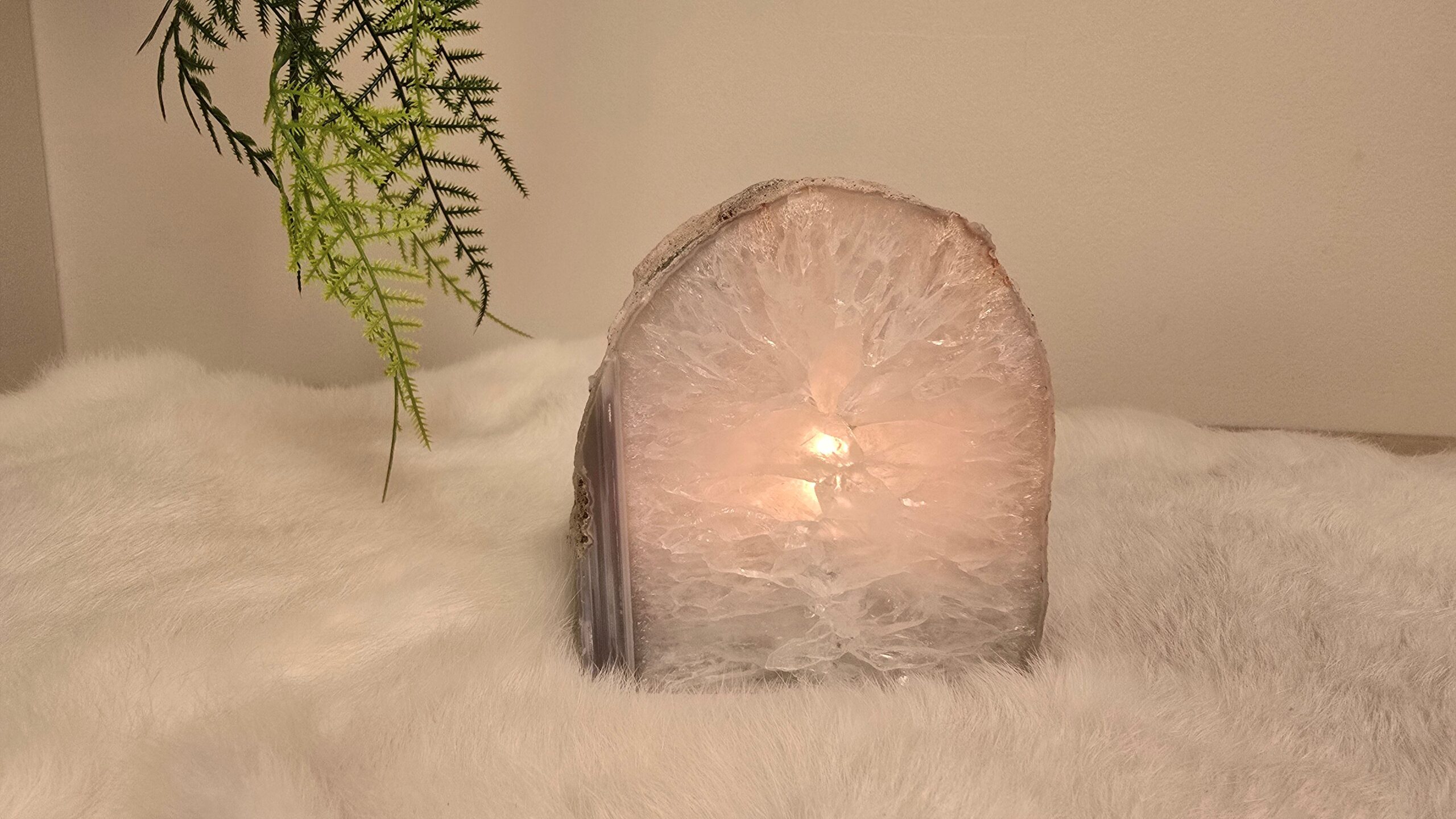 Agaat waxinelicht met voorzijde gepolijst en rondom ruw
