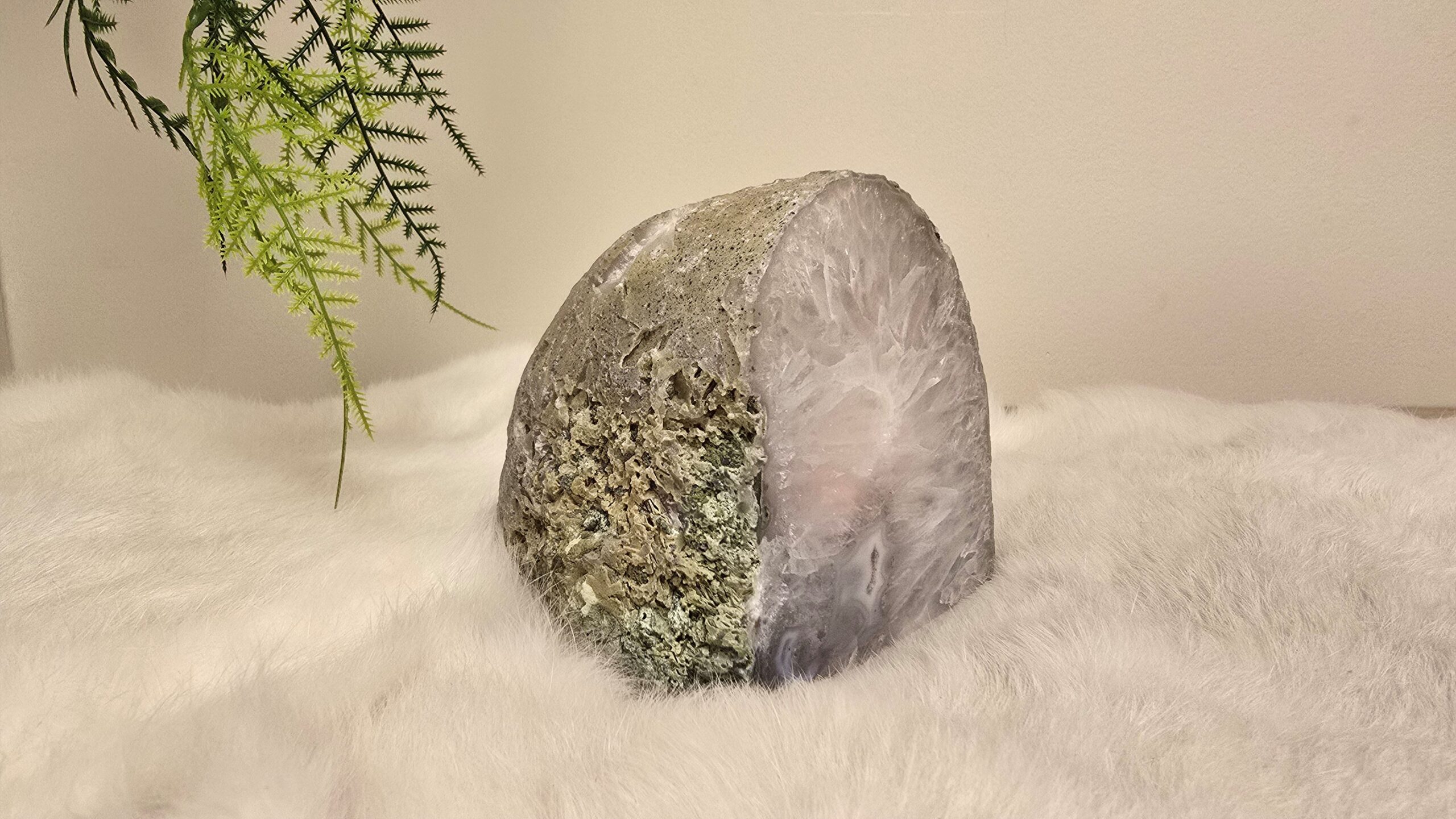 Agaat waxinelicht met voorzijde gepolijst en rondom ruw