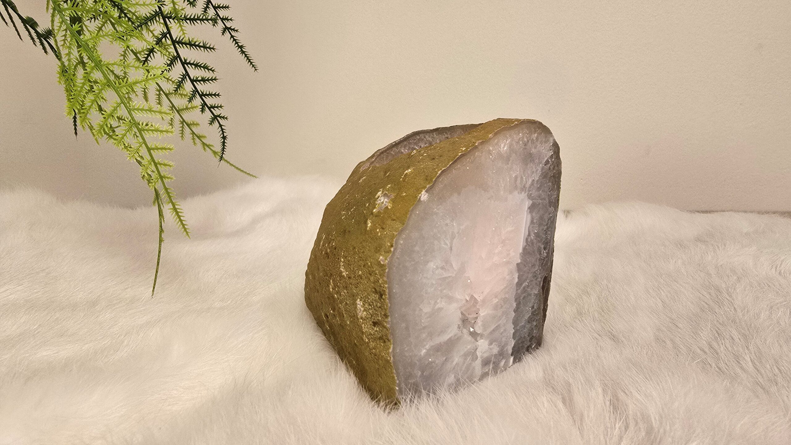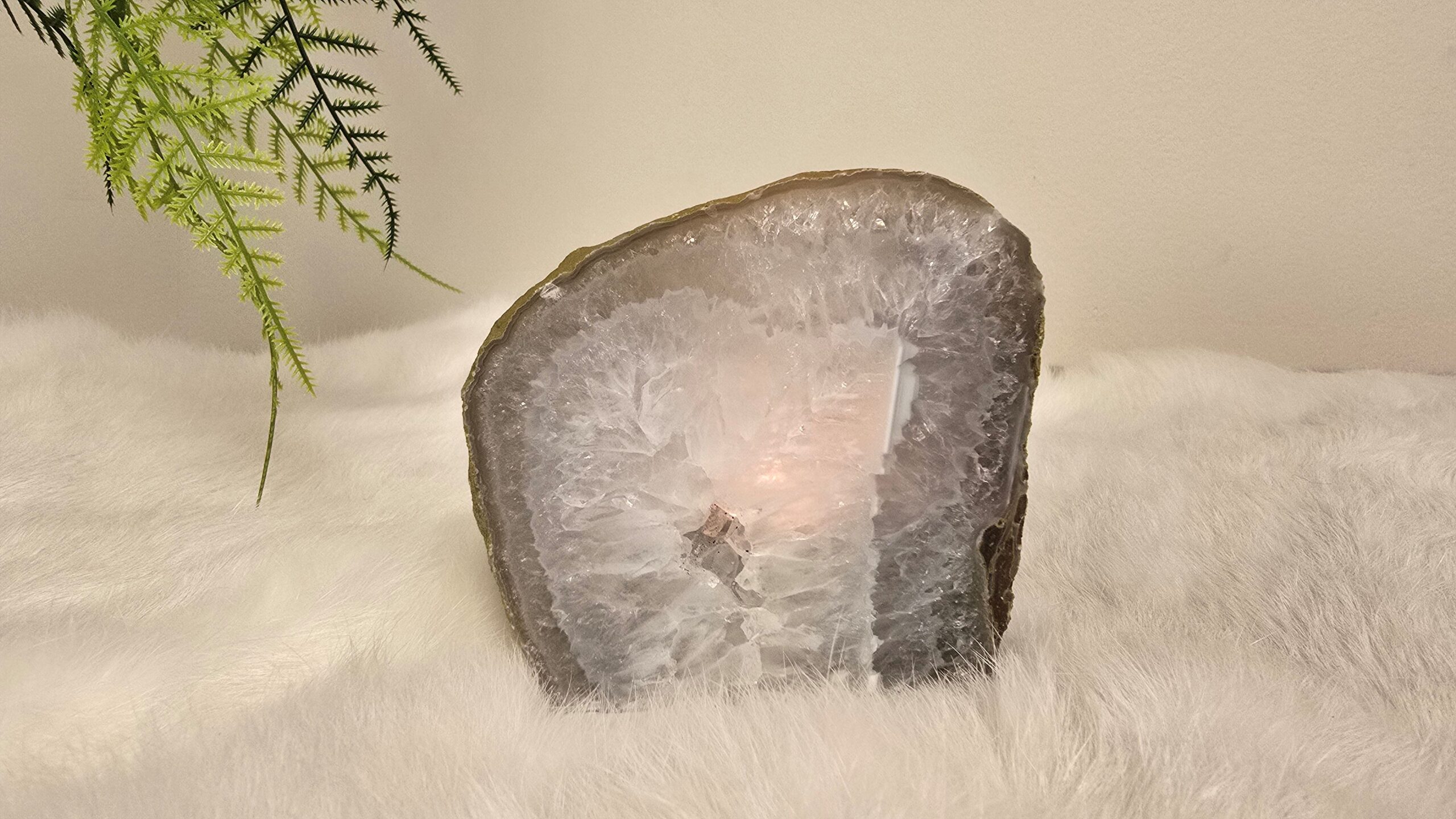 Agaat waxinelicht met voorzijde gepolijst en rondom ruw