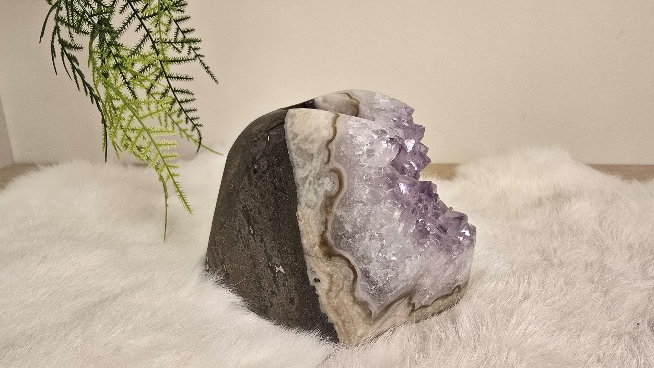 Amethist is ons natuurlijke kalmeringsmiddel, dat prikkelbaarheid kalmeert, stress en spanning verlicht, balanceert stemmingswisselingen, verdrijft woede en angst. Amethist geeft inzicht in gevoelszaken, kan helpen om bepaalde ervaringen een plaats te geven. Het activeert ons spirituele bewustzijn en opent onze intuïtie. Amethist zet alles in het licht, waardoor je energieveld wordt gereinigd en beschermd voor invloeden van buitenaf.