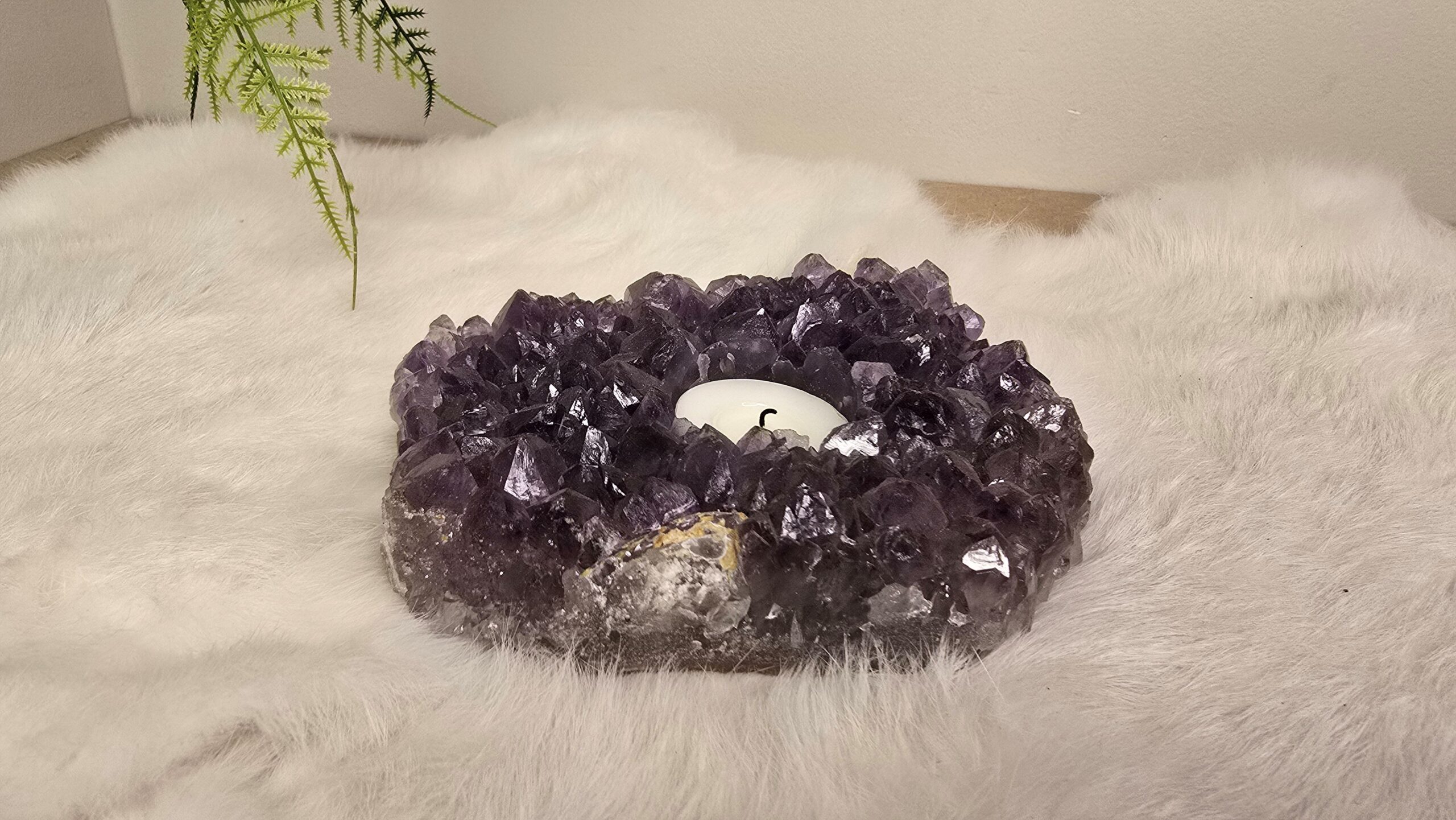 Amethist is ons natuurlijke kalmeringsmiddel, dat prikkelbaarheid kalmeert, stress en spanning verlicht, balanceert stemmingswisselingen, verdrijft woede en angst. Amethist geeft inzicht in gevoelszaken, kan helpen om bepaalde ervaringen een plaats te geven. Het activeert ons spirituele bewustzijn en opent onze intuïtie. Amethist zet alles in het licht, waardoor je energieveld wordt gereinigd en beschermd voor invloeden van buitenaf.