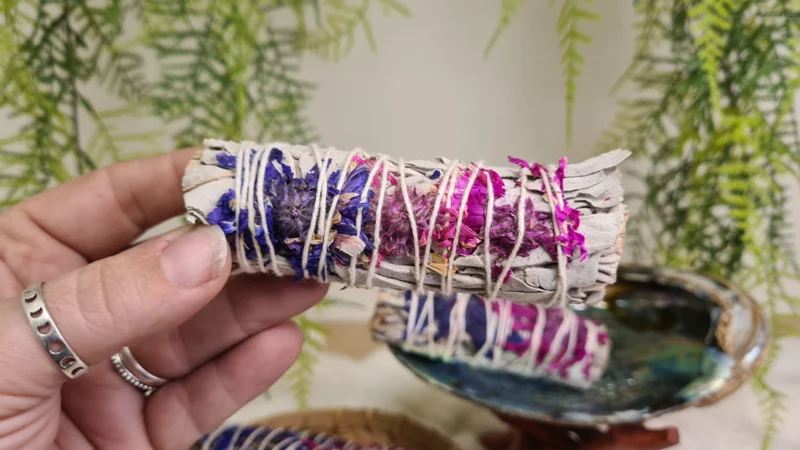 Reinig je huis met de kracht van witte salie en de zachtheid van seringenbloemen. Deze smudge stick is geschikt voor reinigingsrituelen en het verdrijven van negatieve energie. De bundel van salie en de bloemen vrolijkt je op en maakt je scherp. Het is een geschikte smudge stick om je dag mee te beginnen of om je nieuwe huis mee in te wijden.