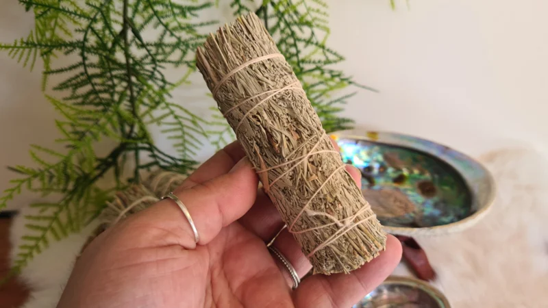 Een smeulbundel van deze Shasta Salie is dus erg populair voor het bewieroken van iemands aura (van boven naar beneden) of het snel energetisch zuiveren van kamers. Zorg dat je ten alle tijden goed ventileert.