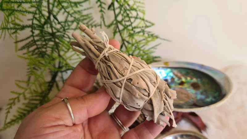 Een smeulbundel van deze Witte Salie is dus erg populair voor het bewieroken van iemands aura (van boven naar beneden) of het energetisch zuiveren van kamers. Zorg dat je ten alle tijden goed ventileert.