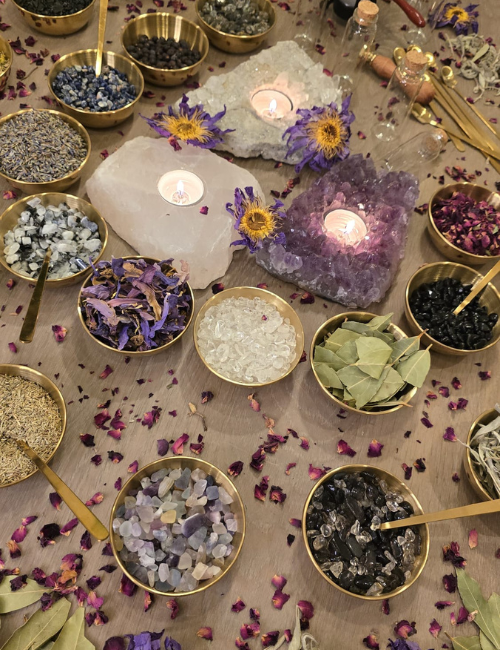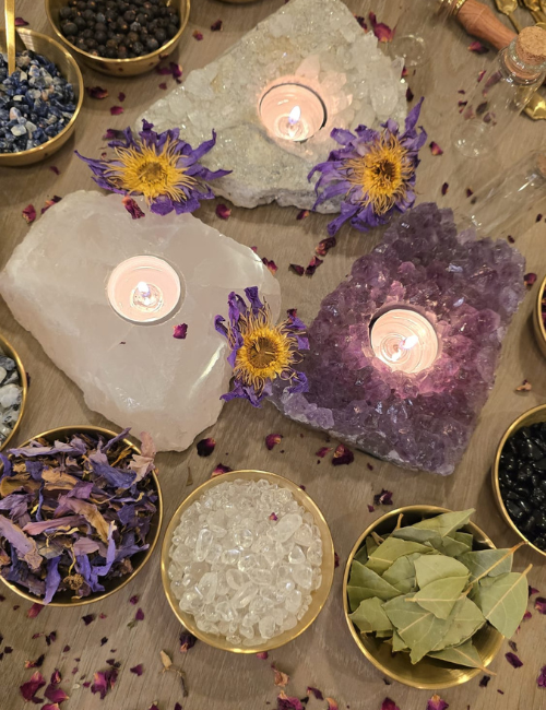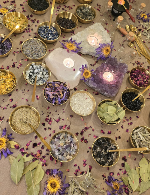 Ontdek de magie van wensflesjes, ook wel spell jars genoemd. Deze kleine flesjes worden al eeuwenlang gebruikt als amuletten om liefde, bescherming, rust of voorspoed aan te trekken. Tijdens deze workshop maak je jouw eigen spell jars, gevuld met edelstenen, kruiden en bloemen die allemaal een symbolische betekenis dragen. Je schrijft een persoonlijke intentie op en voegt die toe aan je flesje, zodat jouw wens letterlijk wordt meegegeven aan de ingrediënten. Daarna verzegel je het geheel met wax, waardoor er een klein amulet ontstaat dat je bij je kunt dragen of een speciaal plekje kunt geven in huis. Je kunt kiezen uit 8 verschillende varianten: van (zelf)liefde tot dromen, van kracht & zelfvertrouwen tot bescherming, en van voorspoed & geluk tot rust & balans. Voor elk thema is een recept samengesteld met vaste ingrediënten, waarmee je met eigen inzicht je flesje kunt vullen. Of je vult het flesje volledig naar eigen inzicht, passend bij de intentie, zonder recept met diverse soorten beschikbare kruiden, bloemen en edelstenen.