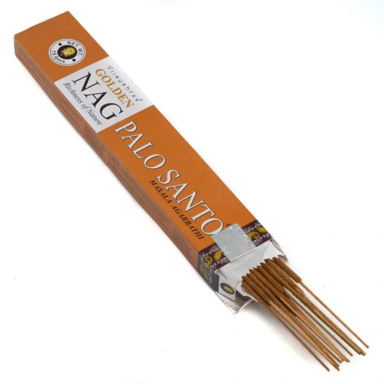 Golden Nag Palo Santo wierook stokjes van Vijayshree Fragrance uit Bangalore, India.